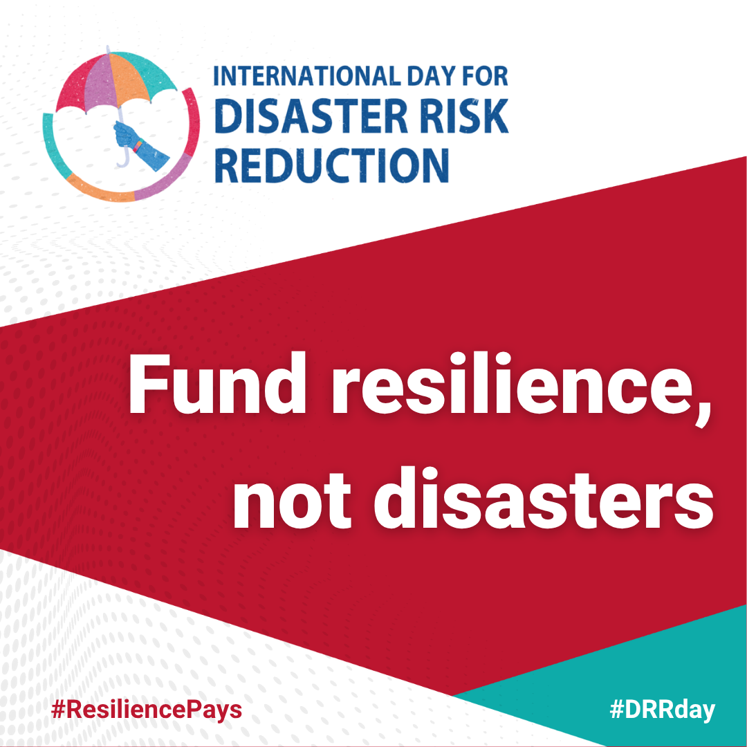 O Dia Internacional para a Redução de Catástrofes foi instituído pelas Nações Unidas, em 1989, com o propósito de sensibilizar governos, organizações e cidadãos de todo o mundo, para a necessidade de desenvolverem ações que contribuam para prevenir riscos e reduzir vulnerabilidades, aumentando a resiliência das comunidades e a capacidade de antecipação e resposta face à ocorrência de acidente graves ou catástrofes.